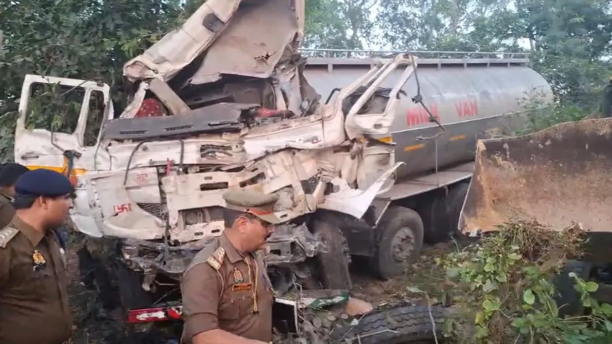 हाथरस में बस से जा टकराई मिल्क टैंकर, उड़े परखच्चे, तीन लोगों की दर्दनाक मौत और 17 घायल