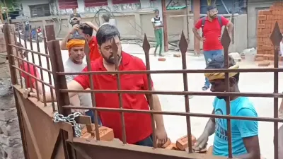वाराणसी में BJP की पूर्व विधायक के बेटे की दबंगई, परिवार के गेट के सामने खड़ी की बाउंड्री वॉल; VIDEO वायरल